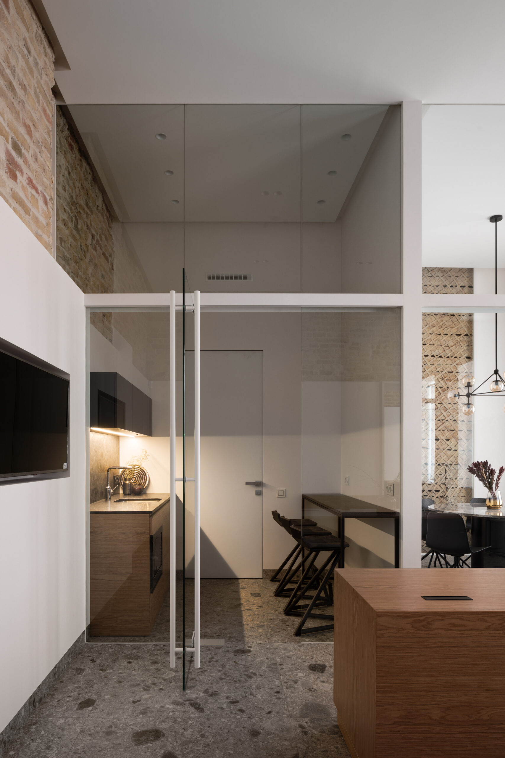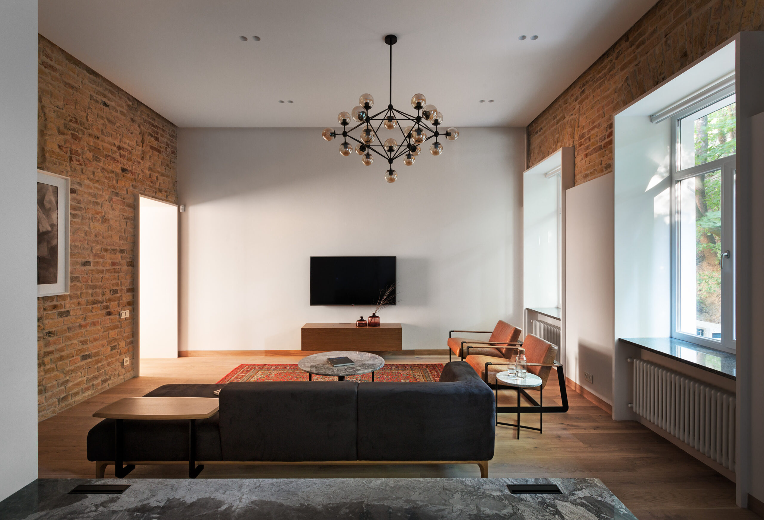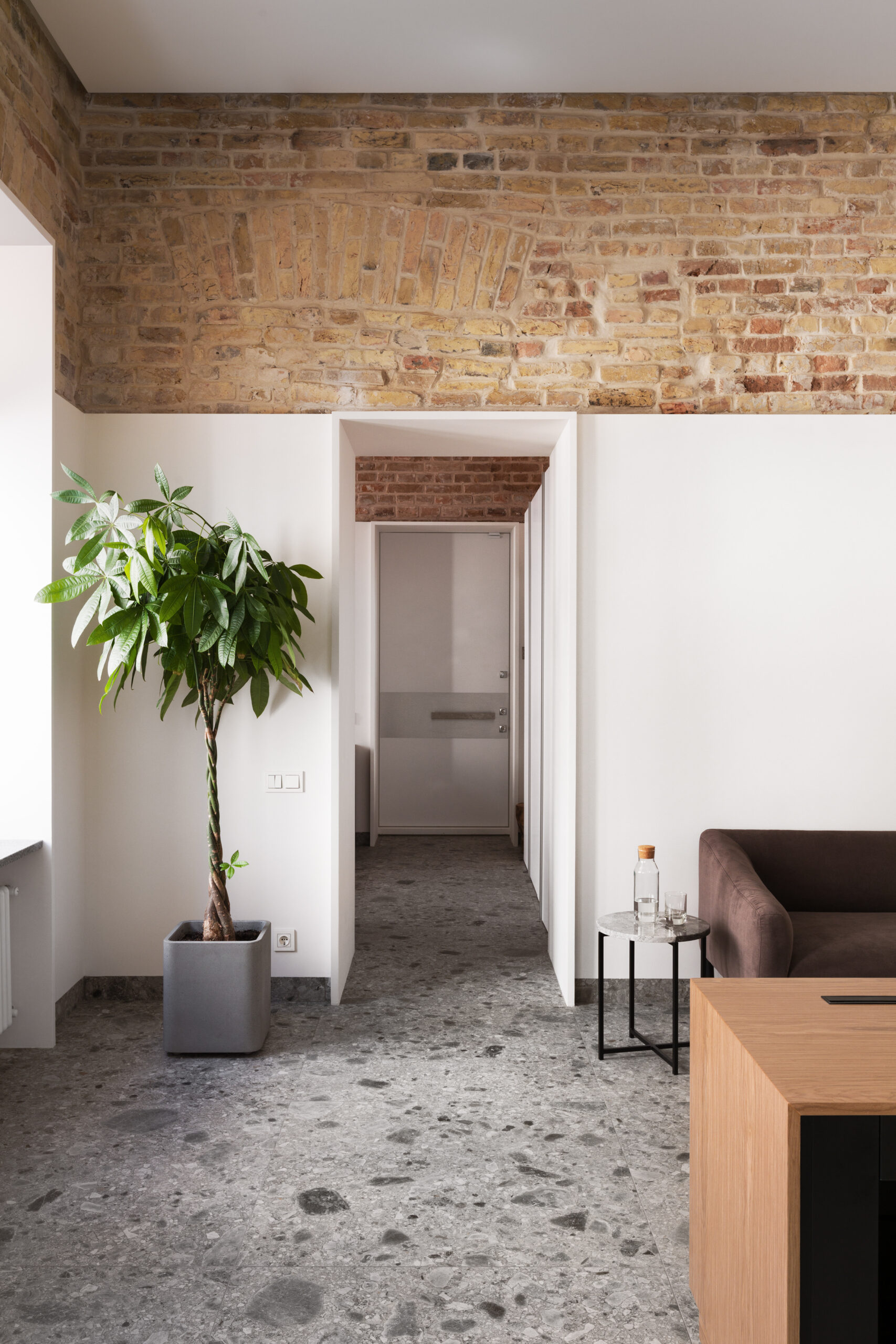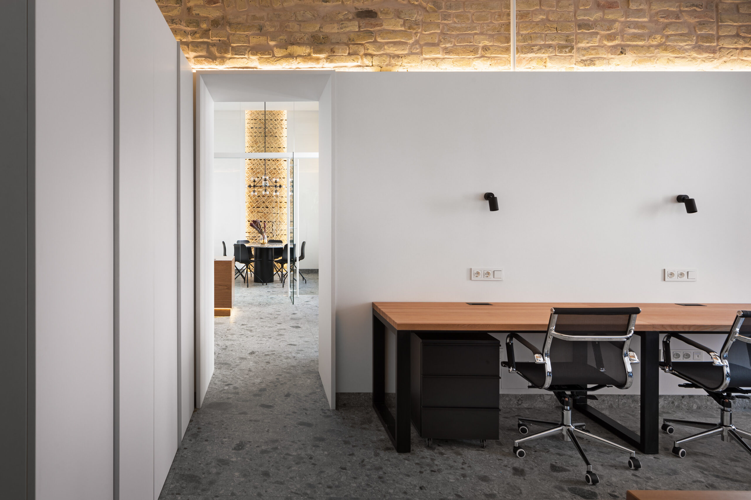 The location peculiarities serve as a milestone of the project concept. Thus the key task was to preserve the existing authentic brickwork together with other original architectural elements such as the wooden grid in the meeting room.